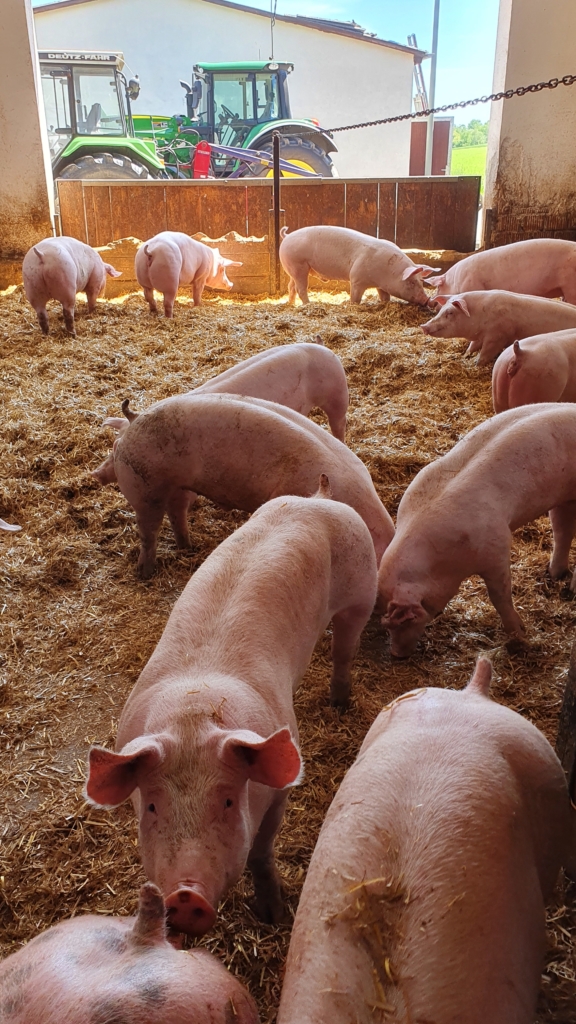 Die Landwirte in unserem Verein halten ihre Mastschweine gemäß unserer Satzung nach gewissen Vorgaben, die die gesetzlichen Rahmenbedingungen für Schweinehaltung deutlich übertreffen. Alle Betriebe werden dahingehend durch eine unabhängige Kontrollstelle zertifiziert und regelmäßig kontrolliert. Tieren, deren Haltung unseren Vereinskriterien entspricht steht mindestens 30 % mehr Platz zur Verfügung als der Gesetzgeber verlangt. Des Weiteren steht allen Mastschweinen eine geschlossene, eingestreute Fläche zur Verfügung. Die Einstreu erfolgt mit trockenem, sauberem, schimmelfreien Stroh und beträgt mindestens 400 g je Tier und Tag. Die Stroheinstreu ermöglicht es den Schweinen ihr arteigenes Verhalten, das Wühlen mit der Rüsselscheibe im Untergrund, auszuleben. Des Weiteren steht den Tieren auf diese Weise eine weiche Liegefläche zur Verfügung, was dem Tierwohl zuträglich ist. Das Stroh stammt dabei aus eigener Erzeugung oder aus regionalen Betriebskooperation.